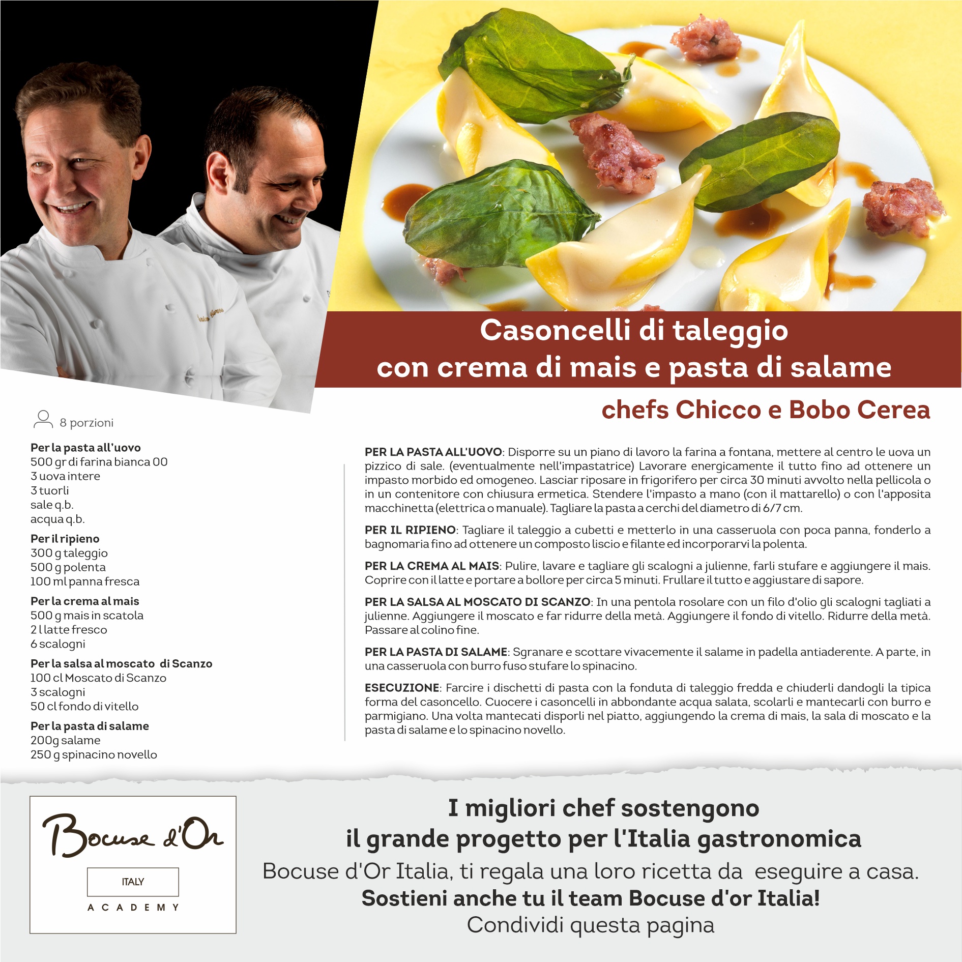 I migliori Chef sostengono il grande progetto dell’Italia gastronomica, oggi per voi la ricetta dei fratelli Chicco e Bobo Cerea. Bocuse d’Or Italia ti regala una loro ricetta da eseguire a casa. Sostieni anche tu il team!!!